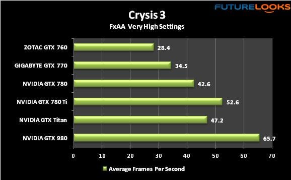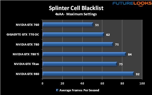 It’s been a smooth adventure cranking everything up on this older, but still ferociously punishing title (with an uncertain future). The minimum frame count I noticed was about 53 frames. There’s a great deal of wave, chopper, and gun play action going on in the recorded benchmark so your results may be higher, depending on how smooth your route through the game is. But we chose to take a harder route, and you can clearly see, the GTX 980 stepping up with a very playable frame rate.