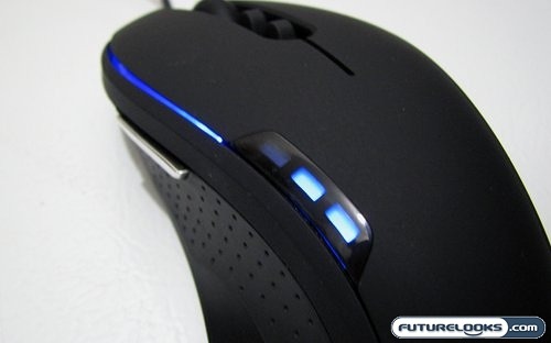 Along the left edge of the mouse, you’ll find the first of many customizable features built into the NZXT Avatar. Of course there’s the left mouse button, but the also a “back” button the can be assigned to other features as needed, using the included software. Also on the left side is the DPI meter that glows to signify the level of sensitivity. The three stage meter indicates what DPI level you are currently using, with the levels being easily changed in the included software. If you don’t install the software, the Avatar defaults to a setting of 600 dpi.