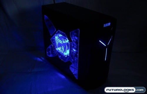 The new theme reveals itself when looking at the lit bezel in low lighting. The side panel blue LED fan does a nice job of lighting up the insides with minimal blinding effect outside. The front blue LED can’t be seen as well since the bulk of it is behind the door. However, the overall effect is a nice break from the norm. Something that the original Guardian was also successful at.