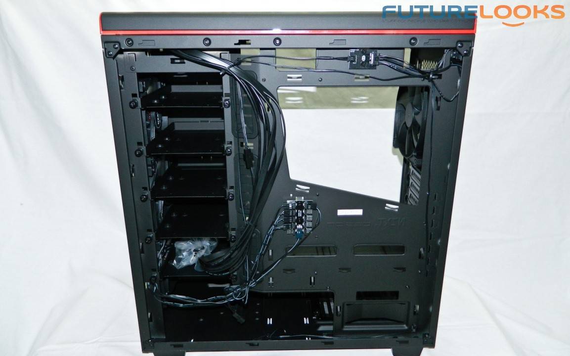 The top of the chassis reveals three more fan ports, and even more sound dampening material attached to the top panel. There is actually enough space on the inside for a dual fan radiator. It might get kind of tight depending on your RAM and motherboard heat sinks, but the possibility is there with the right combination of components.