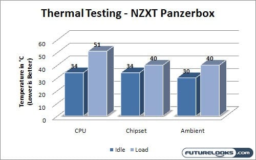 Testing for the NZXT Panzerbox basically consisted of two areas of focus; thermals and noise. As you can probably guess, we started with thermal testing. For this we used the program OCCT to both simultaneously push the system to 100% load and measure the temperatures while under load. The system was left idling from 30 minutes to let temperatures and activity stabilize. Once that was over, temperatures were taken and OCCT was started to push the CPU to 100% and place stress on the RAM and video card. After 60 minutes of this, the temperatures were taken again.