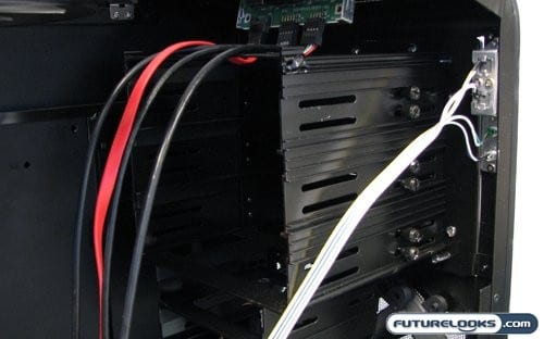 The two upper bays end up only catching the upper most bit of airflow from the front fan, while the lower two bays end up standing right in front of the fan. The means the front drive in this rack takes most of the cooling while the rear drive sits in it’s shadow. While this will definitely require some strategic drive placement, the amount of air being moved should mitigate any cooling problems.