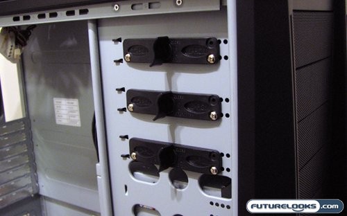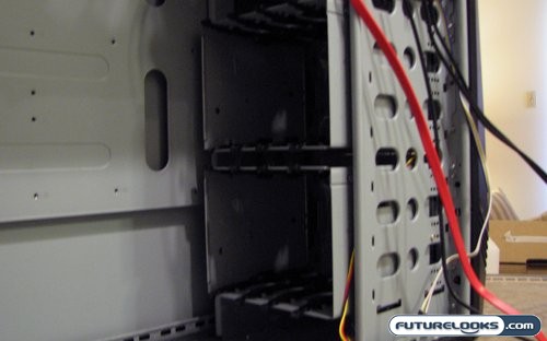 When it comes to installing hard drives in the NZXT Tempest, you’ll want for nothing. NZXT has configured their case to hold up to eight 3.5″ hard drives, and each drive will be amply cooled by the front 120mm fans. The drives themselves are mounted using rails, and the bays they are mounted into are removable. This is useful because it appears that the bays have the possibility to block small portions of an EATX motherboard. This could cause cabling issues, should any connectors be placed at the edge of your EATX board.