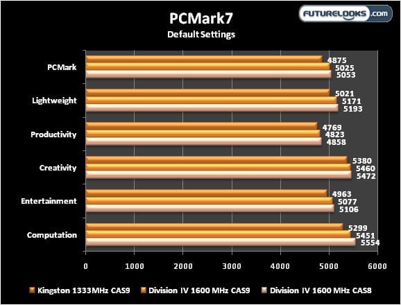 Alright, we know that memory speed helps the CPU. But what about something a bit more real world that tests a system’s overall performance? PCMark07 is about as good as it gets in that respect. Let’s see how it does when manipulating some memory timings.