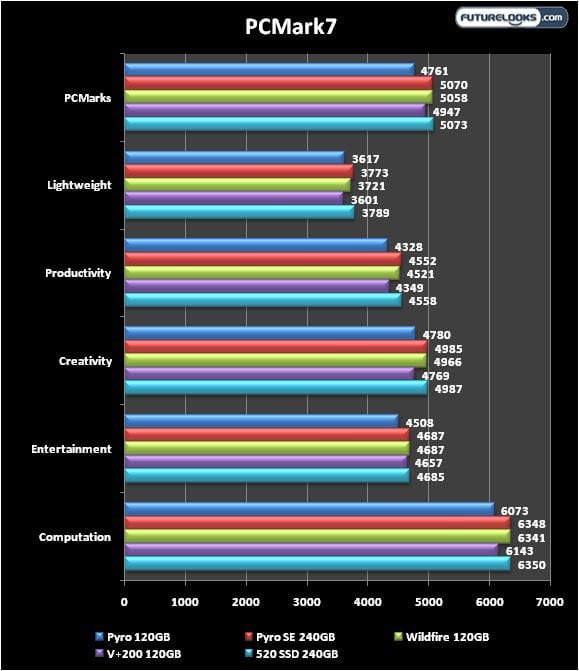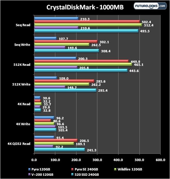 These are the average scores with the OS and other programs loaded on to each SSD. The only variable here is the SSD. Firmware and NAND show us that the Pyro SE is just about as strong a performer as its Wildfire champion brother. Either way, the Pyro SE will be a great SSD for your big programs.