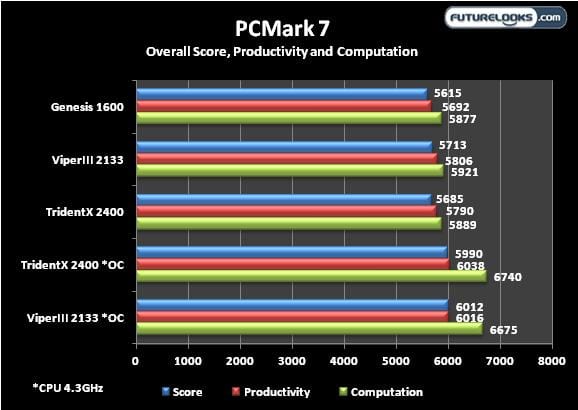 Often, memory can effect overall system performance. PCMark7 is good at revealing any performance advantages.