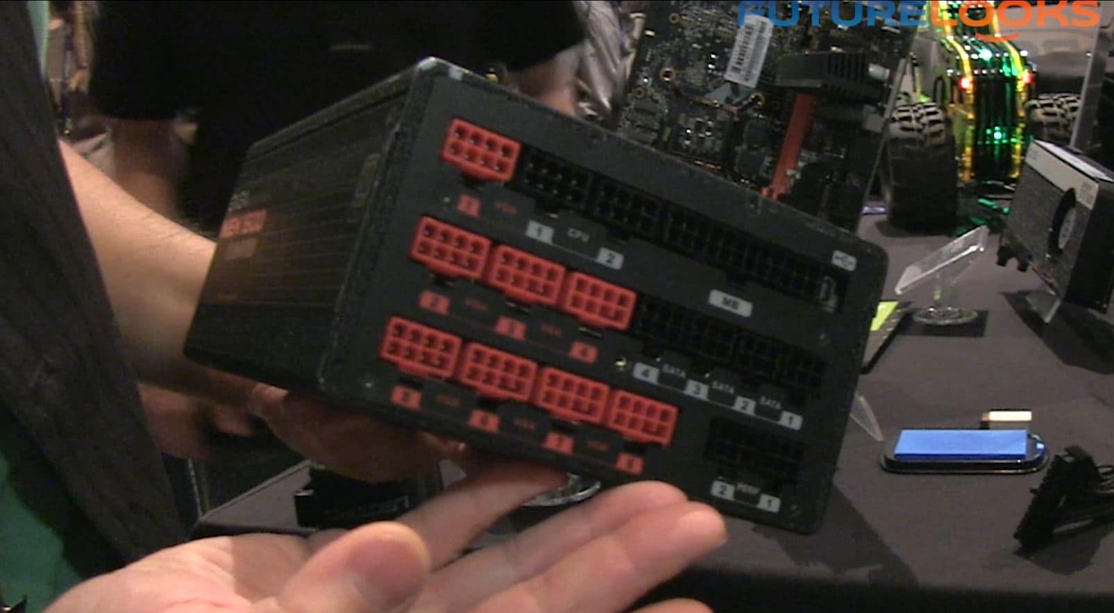 Although we know them best for their NVIDIA based GPUs, EVGA was showing off their latest power supply effort. The new SuperNOVA NEX1500 power supply is all business with a fully modular design and even individually sleeved cables that enhance cable management. Typically, you have to buy these or sleeve them yourself so it’s nice to see a company on trend with the value added stuff in the box. It even has adjustments such as fan speed and voltage via a software utility and a USB header on the PSU.