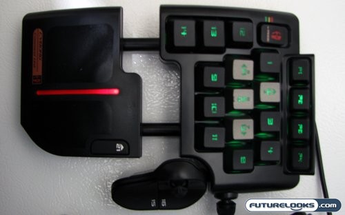 The main bank of keys on the Saitek Cyborg Command Unit come arranged in a pattern similar to the WASD cluster on many standard keyboards. The WASD keys are of course highlighted, as they are the most commonly used keys for First Person Shooters. However each of the keys are numbered, and all the keys can be assigned to any function. This is where the pad starts to come in handy for those who enjoy Real-time Strategy games.
