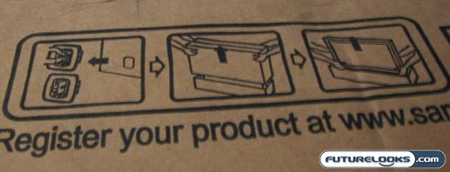 I have to hand it to Samsung. They know a thing or two about carefully packing a large television into an even larger box. In order to provide both great protection and relative ease of mobility, the box for the Samsung LN52A630 HDTV has a couple of little black brackets near the bottom. These hold the box in place. Remove them and the entire box, with the exception of the base, slips off like a sleeve. That’s pretty creative, because it means that you can easily use the handles on the sides of the box for easy transport.
