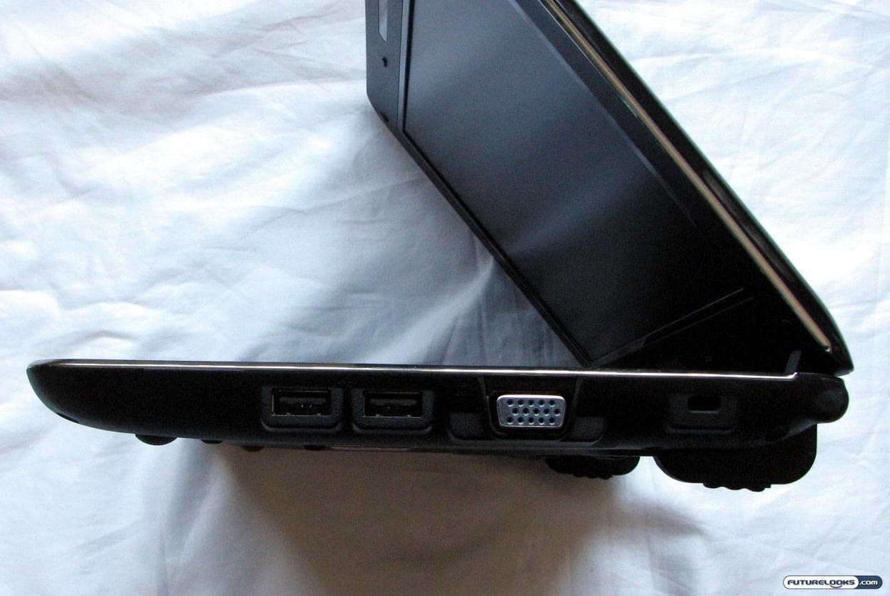 Running our way through the spec sheet, we discover Windows 7 Starter as the operating system, as well as 1GB of DDR2 RAM, a 10.1″ WSVGA matte display, Intel GMA3150 integrated graphics, 250GB 5400rpm SATA hard drive, Bluetooth 2.1+EDR, 802.11b/g/n Wi-Fi, built-in webcam, and multitouch trackpad. For ports, you get a multi-card reader (in the front), three USB 2.0 ports, a VGA port, LAN port, and jacks for headphones and a microphone.