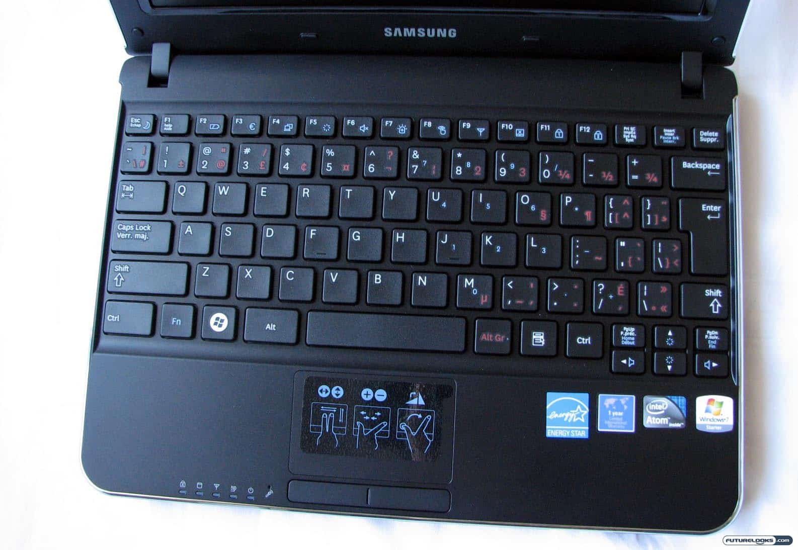 As you can see from the image above, the keyboard is chiclet-style in nature, very much like what you find on current MacBooks. Samsung calls this an “island style” keyboard, because the keys are distinctly separate from one another. This quite similar to the keyboard on the Asus Eee PC 1000HE, which remains one of my favorite netbooks to date.