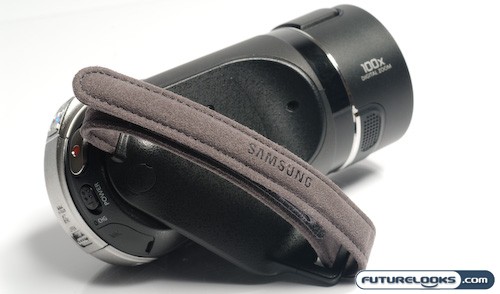 Speaking of the strap, I did find the strap rather uncomfortable on the SC-HMX10A. Samsung has softened up the material with an upgrade to a suede-like unit that greatly improves on comfort. The great rotating grip returns allowing you to customize the fit to allow you to reach all the buttons with ease.