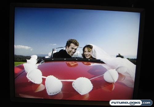 Having a boatload of functions and features isn’t really enough in this market. You also need your products to look good. Whereas Samsung takes the Touch of Color (ToC) approach with its LCD monitors, this photo frame instead has a patterned appearance on both the front and the back. This is largely a matter of personal taste, as you can imagine, but I think the pattern is subtle enough to add a dash of style without being overwhelming. Under dimmer conditions, you don’t even notice that it’s there.