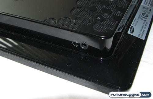 The power button has been cleverly integrated into the back of the SPF-85V, blending in with the textured pattern on the back. And along the right side of the frame (when looking from the front), you’ll find a 3.5mm audio jack in case you want to listen to your own music (and movies) in peace.