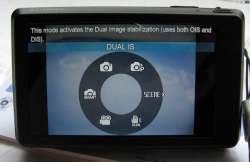 It is a wide-aspect display in the back, so if you are taking standard 4:3 aspect photos, the virtual buttons don’t obscure your view whatsoever. Along the left side, you can have quick access to changing the shooting mode, flash, timer, display settings, and so on.