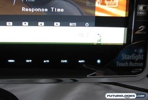 As a stylish piece of technology that’s meant to fit in the ultra-chic homes and offices of the contemporary world, the SyncMaster P2370 comes with what Samsung calls Starlight Touch controls. Rather than having physical buttons mar the sleek appearance of this monitor, you get touch-sensitive controls that light up along the lower-right corner of the bezel. These “disappear” behind the piano black finish when the LCD is turned off. This design cue looks great and it adds greatly to the minimalist approach of the Samsung P2370.