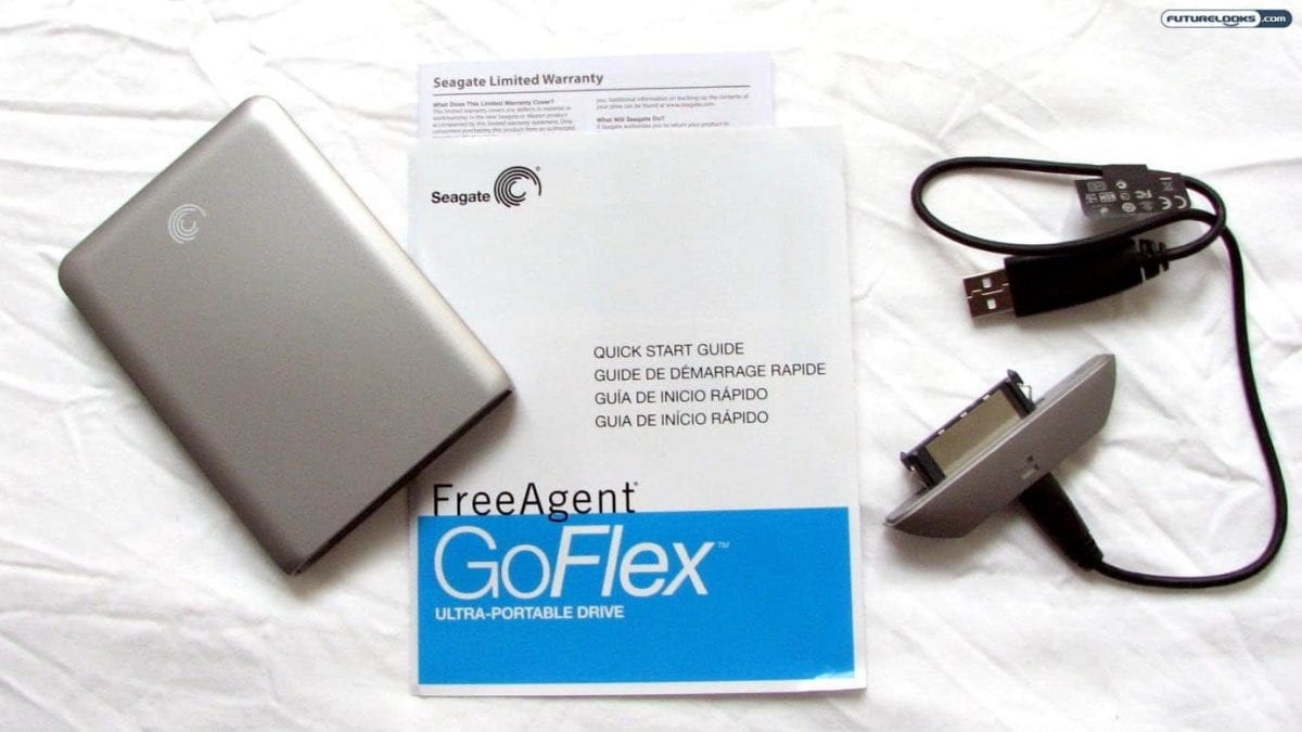 For the purposes of this review, we’re using the Seagate 500GB FreeAgent GoFlex portable hard drive which retails by itself for about $99.99 US. Out of the box, it comes with a cable for USB 2.0. When you pair it with the upgrade kit, though, you effectively transform that USB 2.0 drive into a USB 3.0 drive. Because the GoFlex cable kit does use a standard SATA connector, you can essentially upgrade ANY 2.5 inch hard drive, which we’ll get into in a bit.