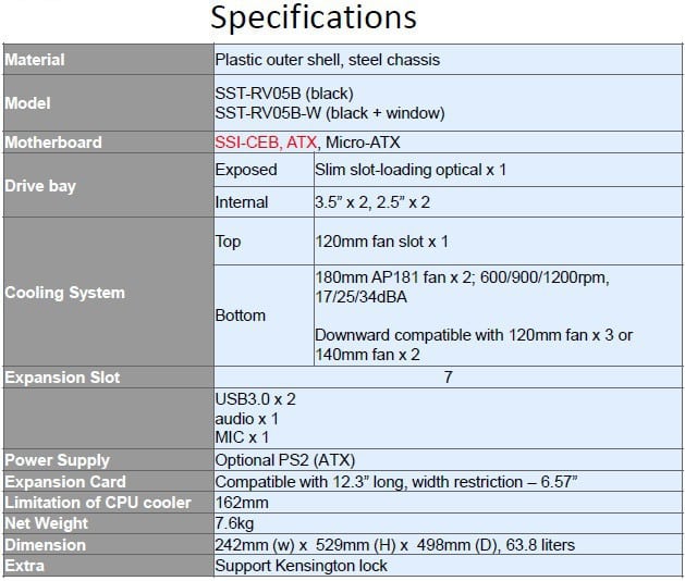 So what features are key to the Silverstone RV05? Remember, some of these are carried over from the previous version but here is the break down list.