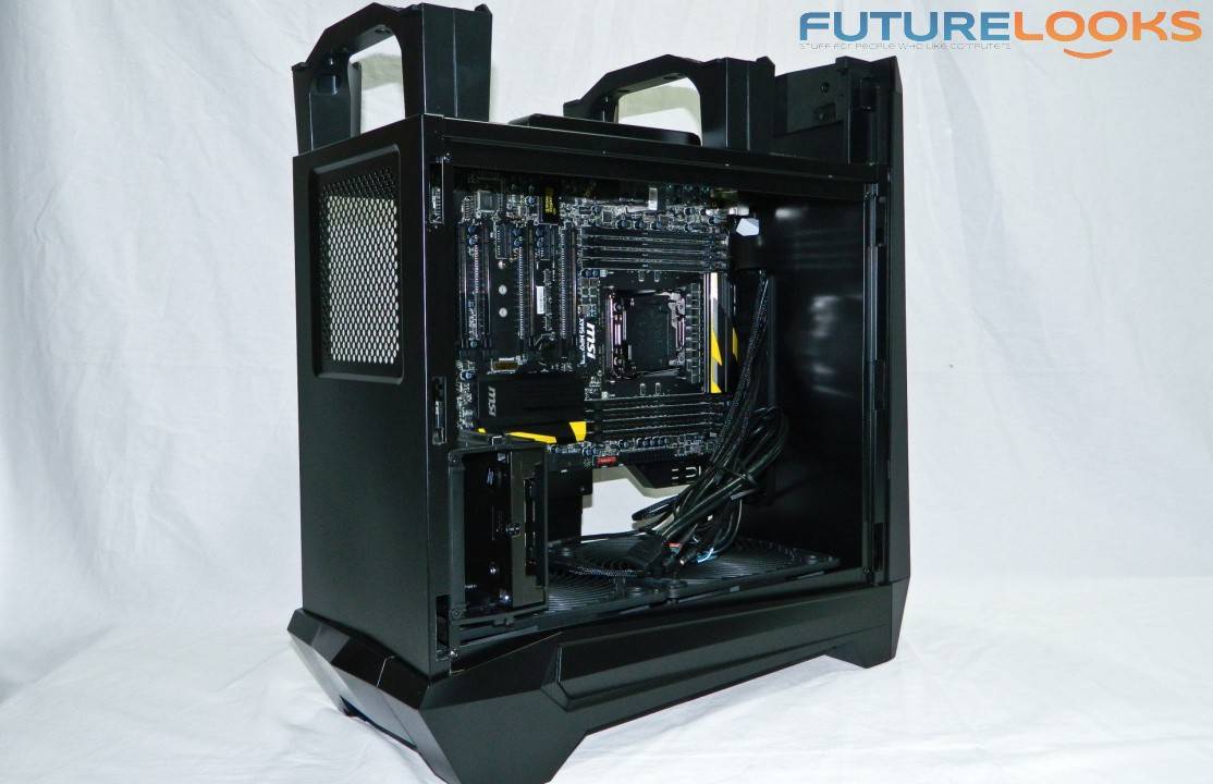 Installing the listed test system went without issue. The SSD and hard drive fit perfectly in to the cage as well as behind. More importantly, the motherboard and the large CPU cooler were really easy to install. Routing wires requires the usual amount of patience for any enclosure. For giggles, I installed a 240mm Black Ice and 360mm Koolance 1050 radiator at the bottom after removing the two 180mm fans. That is where things get interesting.