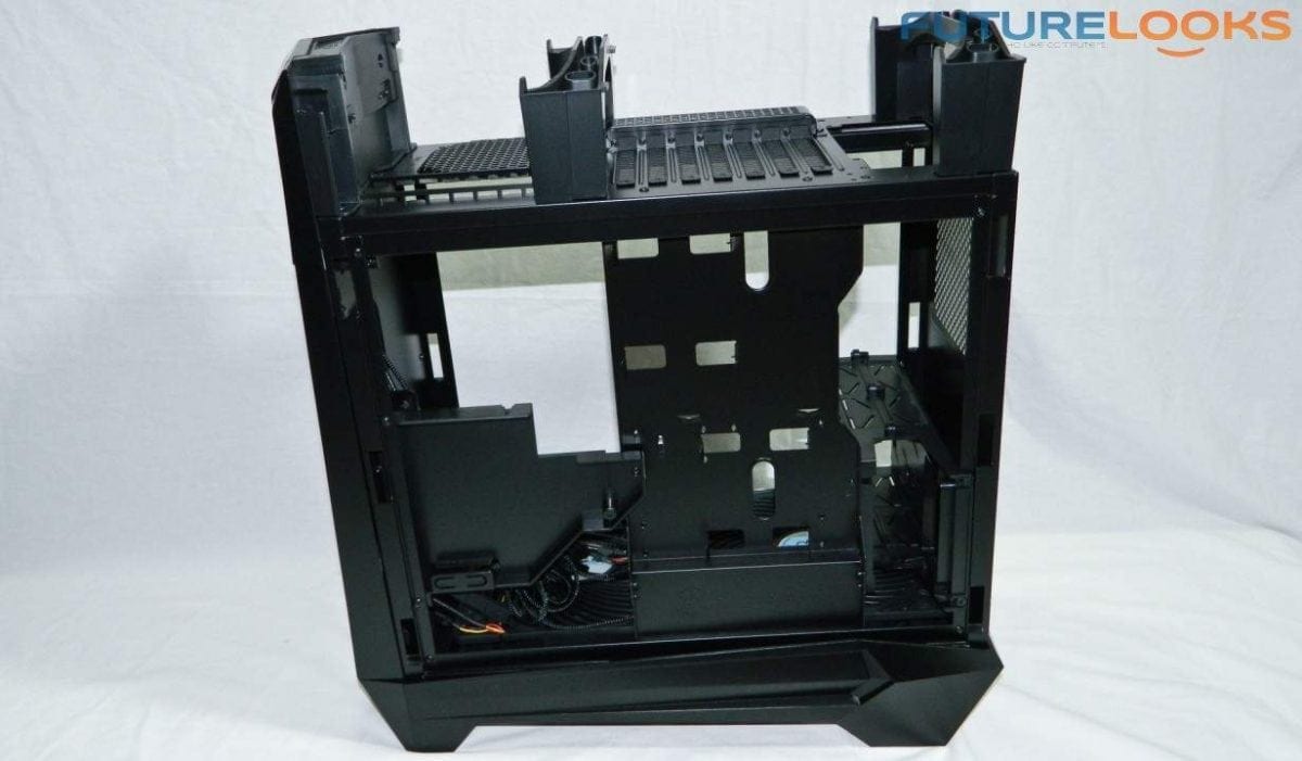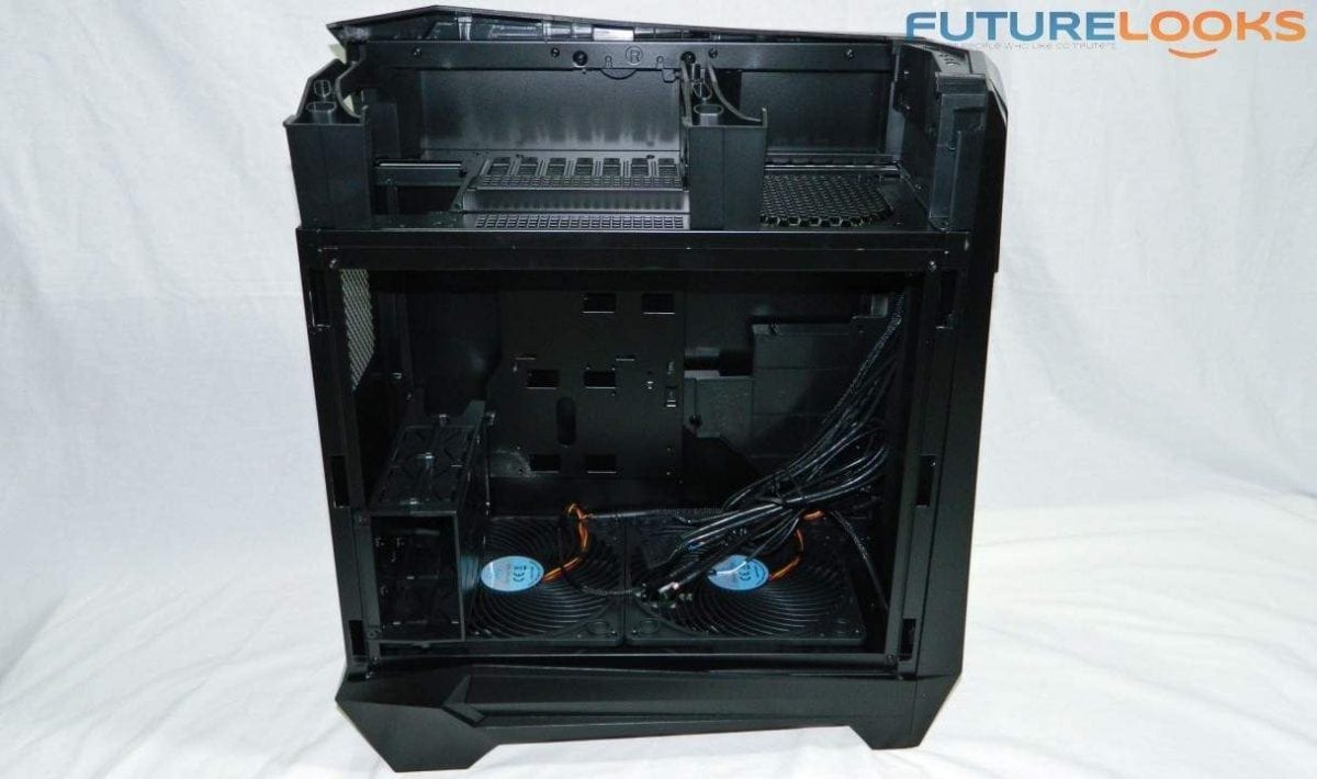 The bottom contains two 180mm Air Penetrator model case fans that draw cooler air in through the chassis bottom and pushes it directly up on to the hottest component coolers which are in your GPU and CPU. It will also blow past the motherboard perfectly as well.