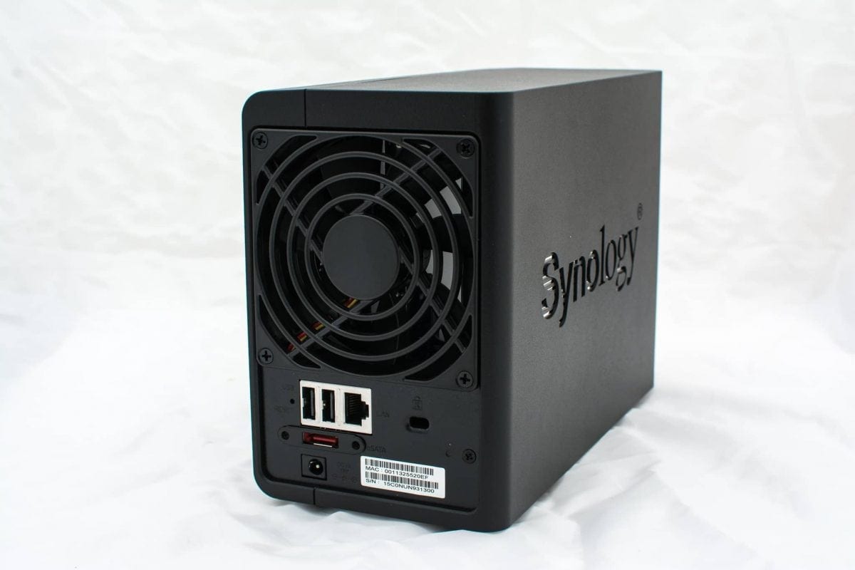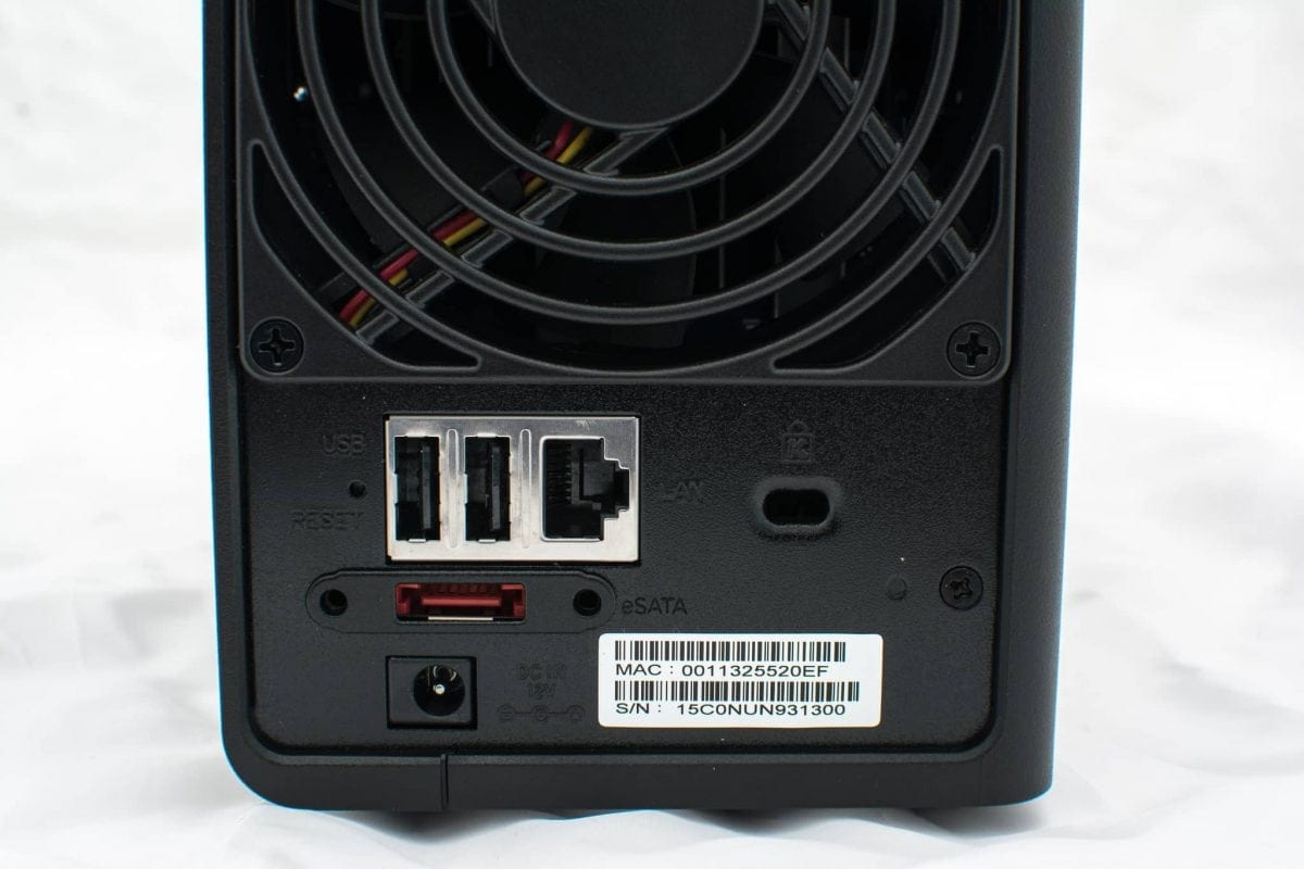 Around to the back of the DS216+ you can see the 92mm exhaust fan, Gigabit Ethernet port, eSATA port, the 2 USB 2.0 ports and of course the 12V power input. It would have been nice to include USB 3.0 ports in the back instead of USB 2.0 but if they want to keep the cost down a little bit, perhaps that is the decision to exclude USB 3.0 on the back.