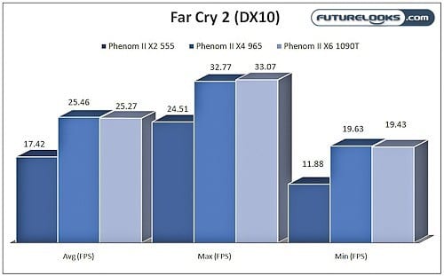 No glory for the X6 here. It’s pretty much neck and neck with the X4, but gets edged out ever so slightly by the faster CPU cores on the X4. There’s no hope for the X2 as it lags behind. There is definitely benefit for multiple cores to a certain extent.