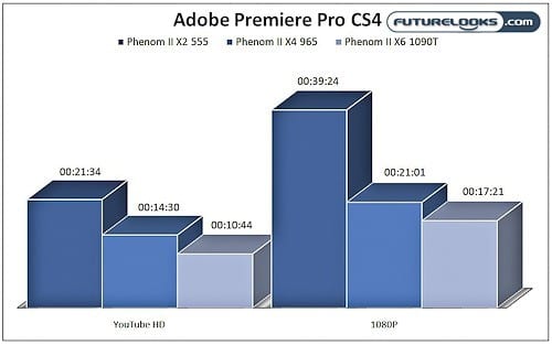 We wanted to find as many benchmarks as possible that take advantage of the extra cores, from rendering a real video in Adobe Premiere Pro CS4, to games that are known to be able to take advantage of multi-core processors. We’ll also be comparing all of the listed CPUs in the benchmarks so we have a better understanding of which types of applications would benefit most from the extra cores on-board. For the X6 1090T, we kept Turbo CORE enabled for all tests because it is a feature of the CPU.