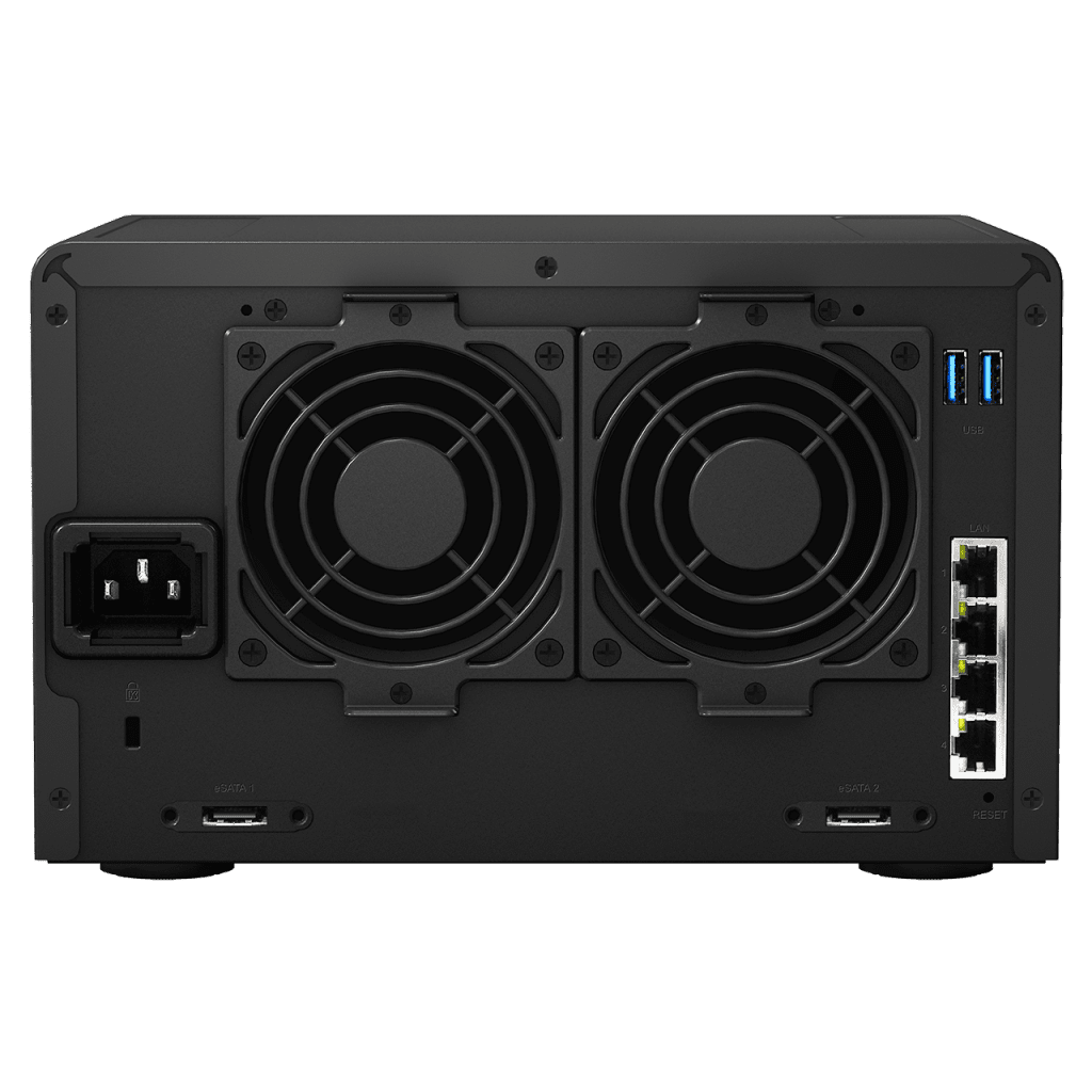 The DiskStation DS1515 is your more traditional “box” that provides 5 bays, allowing you to hot swap downed drives on the fly, and you can even lose one more, if that drive that you ordered is out of stock, and you have to wait, which happens. The DS1515 is no slouch in performance either, offering a quad core CPU, hardware encryption, and four Gigabit LAN ports, which can provide a combination of fail over redundancy, or increased performance through link aggregation, on compatible network hardware.