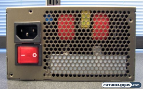 From the front you are able to get a glance of some of the large components used to construct the Toughpower 1000W. We had to settle for this, as the Toughpower 1000W is very difficult to take apart. Thermaltake did send us some pictures of the interior, which really demonstrates how all that extra stuff inside lends to both the depth and weight of the unit. The Toughpower 1000W actually consists of two smaller 500W supplies combined together, and cooled by many huge heatsinks. You’ll notice that a fan is absent from the front of the power supply.