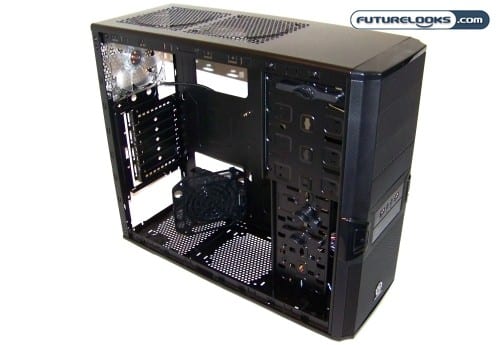 The single fan keeps temps manageable internally. None of the components were registering any unusually high level temps either. The bulk of the warm air blowing out the back was from the CPU cooler. As additional cooling fans are added, temps drop even further and finally level off as a larger volume of cooler air is consistently moved from the front out through the back and top.