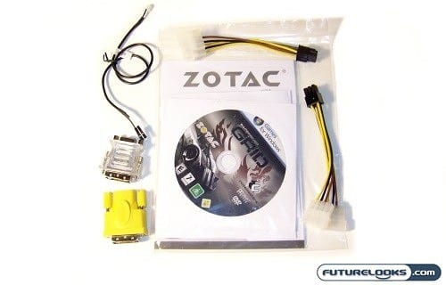 Typically, what separates one nVidia video card from one manufacturer to another is how they lay out the value added bundle that comes with the card. Inside the ZOTAC themed box is a well preserved Geforce GTX 275 in all its splendor. Included in the box is the standard User Manual and Driver Disc for getting your new video card up and running.