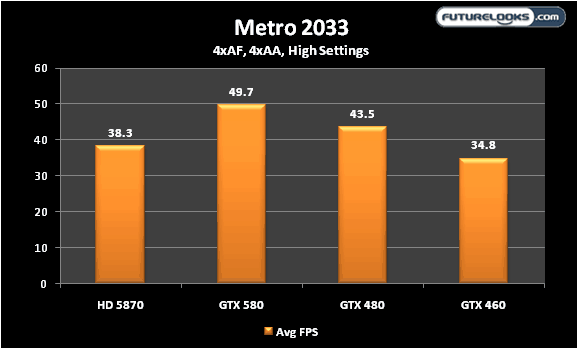 This game can almost be called the “new Crysis”, but without the bugs. While all the cards produced beautiful graphics, but barely playable frame rates, the GTX 580 just seems to go that much further. If you’re using 1080p resolution, you can expect about a 5 frame increase over the 1200p resolution.