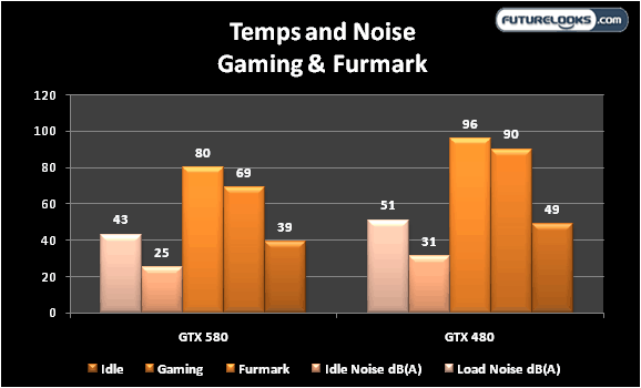 The numbers here caused me to do a double take as well. Honestly speaking, the GTX 580 is literally a pleasure to use especially when gaming as the card realistically refused to get noisy except when Furmark was being used. But, that’s just a worse case scenario test and not even close to how the card will realistically be used 99% of the time. You can actually expect the cooler fan to produce less than 32dB on the average while hardcore gaming.