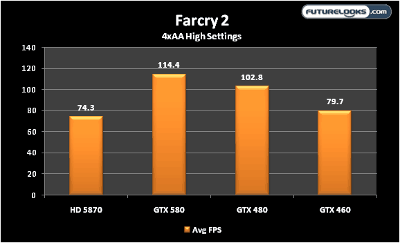Even with such a rich, lush green environment going on during the benchmark, the latest drivers seemingly do a great job of giving us very playable frame rates, even with the GTX 460. The great thing about the GTX 580 is that it makes the game run very, very smoothly. There are very few instances where the card seems to slow. Too bad the bug at the end prevented me from ever finishing the game.